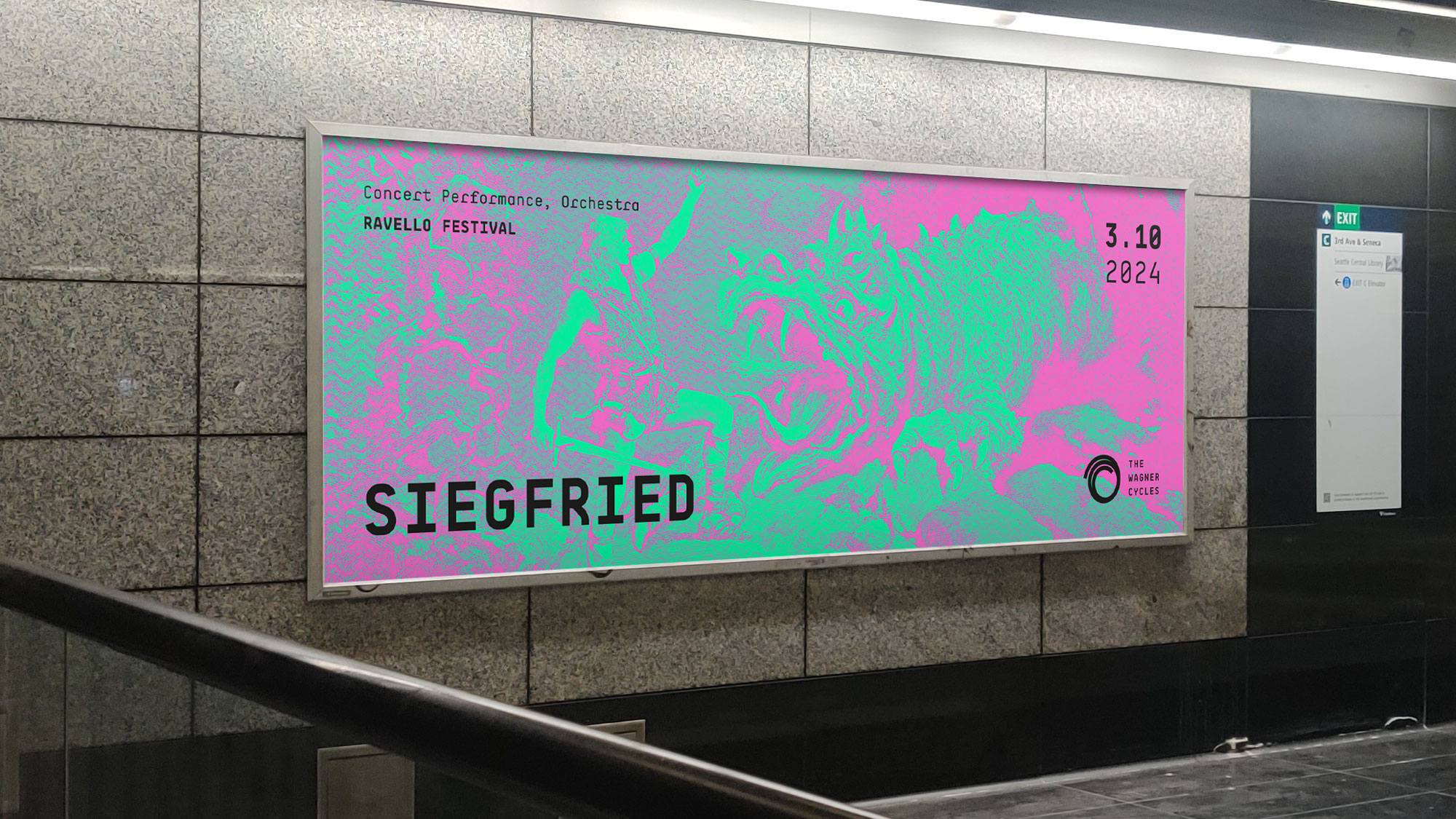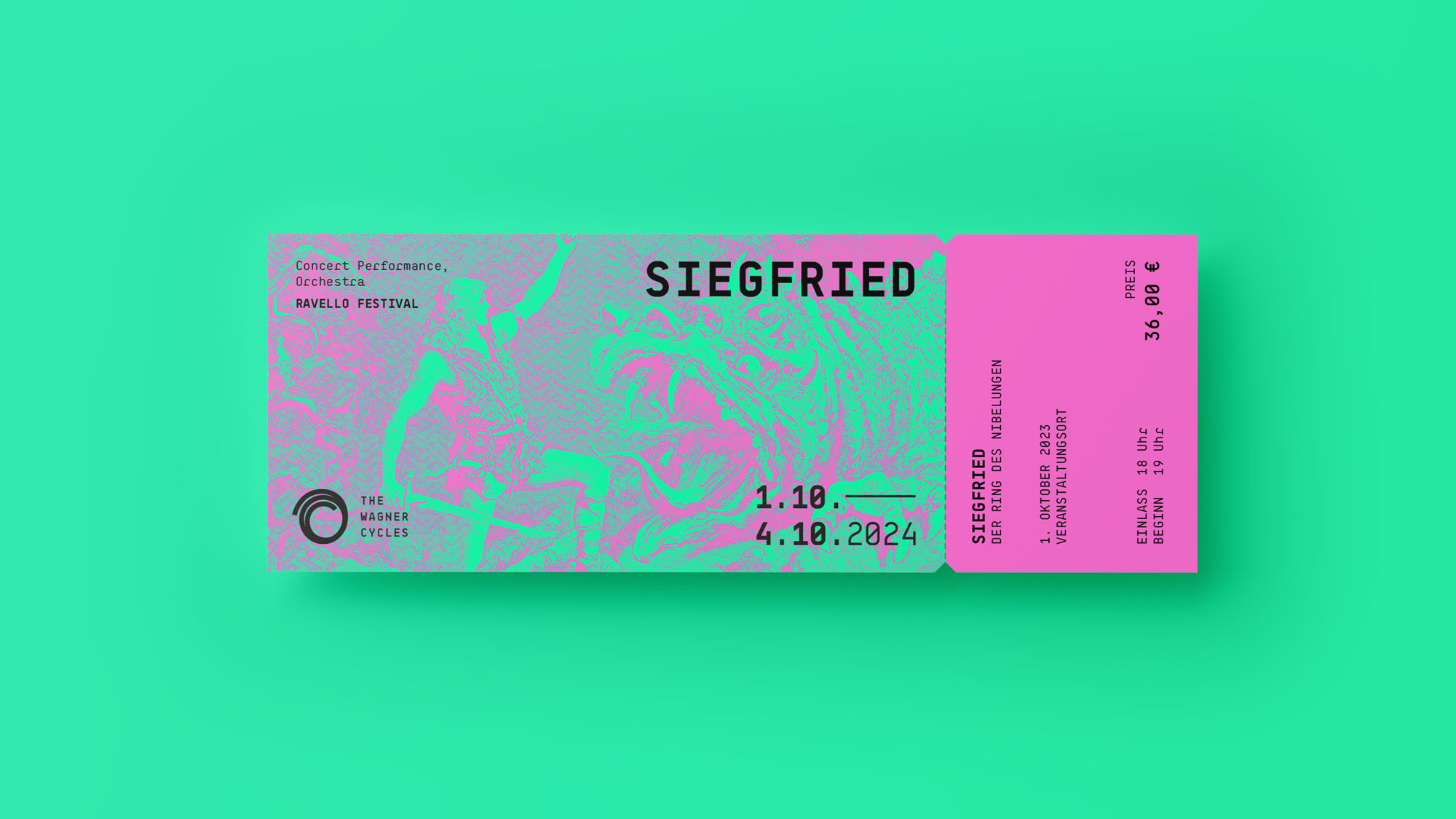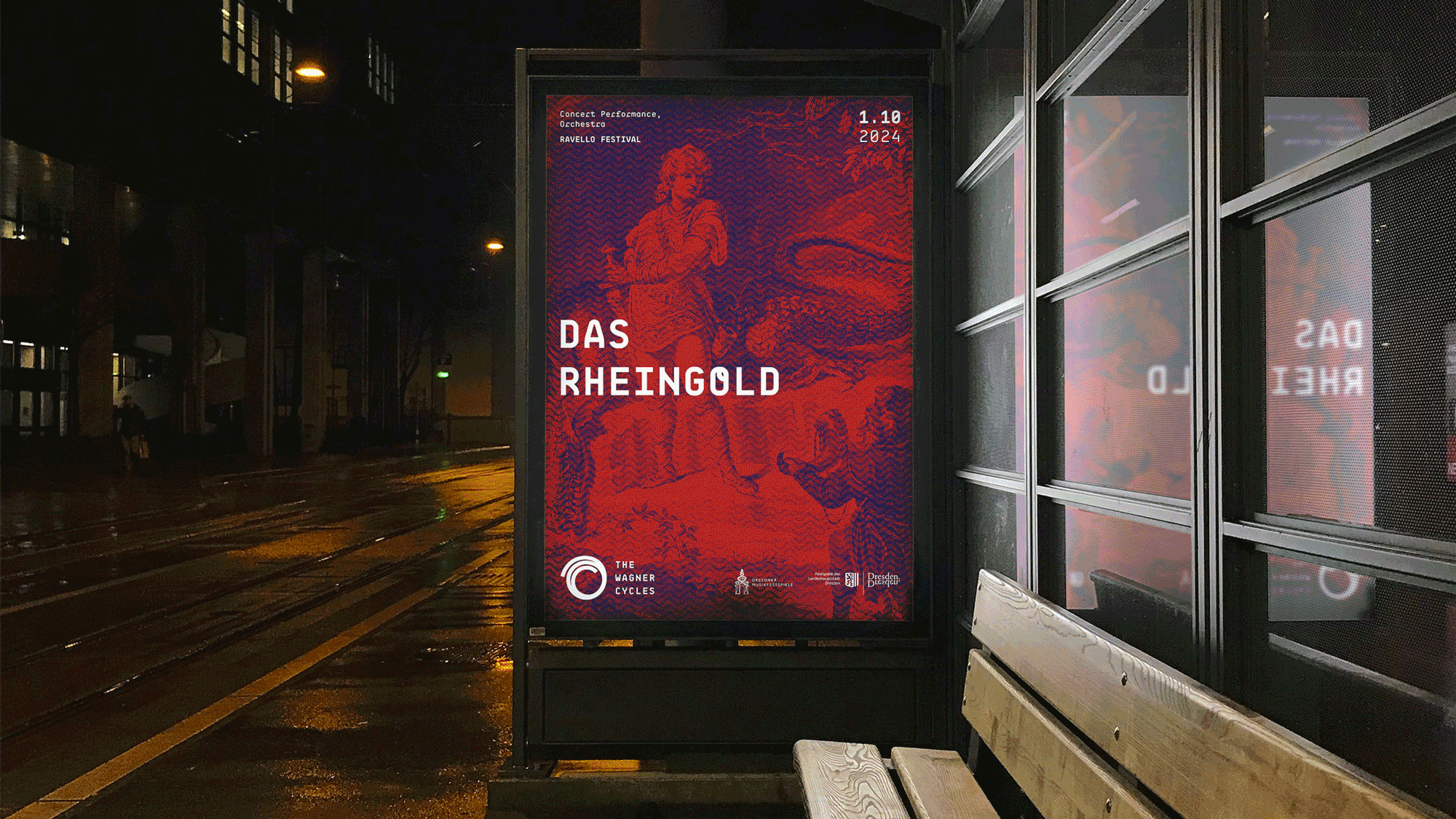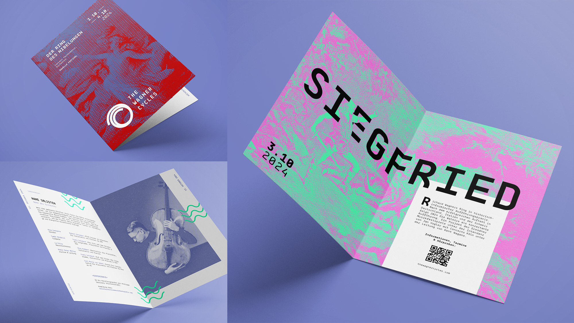We developed a coherent brand concept with two respective logos, both consisting out of one three-dimensional object, viewed from two angles – frontal and lateral. Looking from the front, you see a spiral, which likewise encloses the "C" for "The Wagner Cycles" as a logo. In the side view, you can see a wave, which takes up the "W" and the "A" in its shape and therefore represents the logo of the Richard-Wagner-Academy.